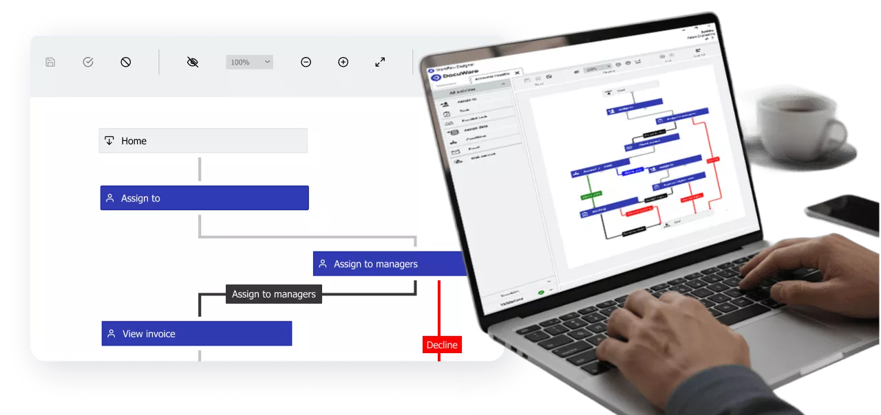 Organisatsioonid saavad kujundada ja automatiseerida oma äriprotsesside jaoks kohandatud töövooge intuitiivse lohistamise-ja-paigutamise liidese abil. Automatiseeritud dokumentide suunamine, ülesannete määramine ja teavitused tagavad, et protsessid viiakse läbi tõhusalt ja õigeaegselt.