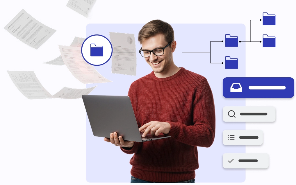 Täpne otsing metaandmete ja OCR-põhise täistekstiotsingu abil võimaldab leida dokumendid kiiresti, ka skaneeritud failidest.